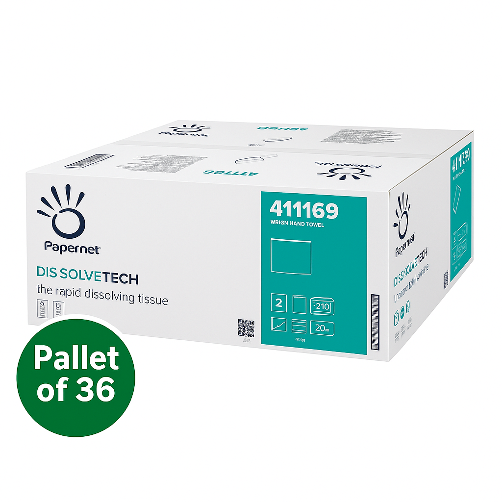 Pallet of Papernet Dissolve Tech V-Fold Hand Towel,2 Ply White - 2 Ply, White. Bulk supply for trade and high-traffic sites.