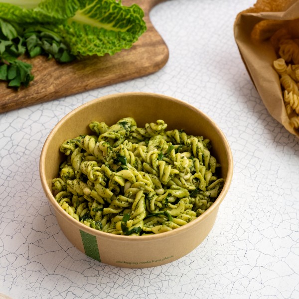 16oz kraft food container perfect for street food. Poke bowls, curries, fried chicken. These bowls are perfect for them all. Sustainably-sourced kraft board with a water-based lining. Brown kraft with Vegware messaging in green. These bowls fit 150-Series lids. Award-winning quality by Vegware, made from plants. Designed for industrial composting, made from recyclable materials.